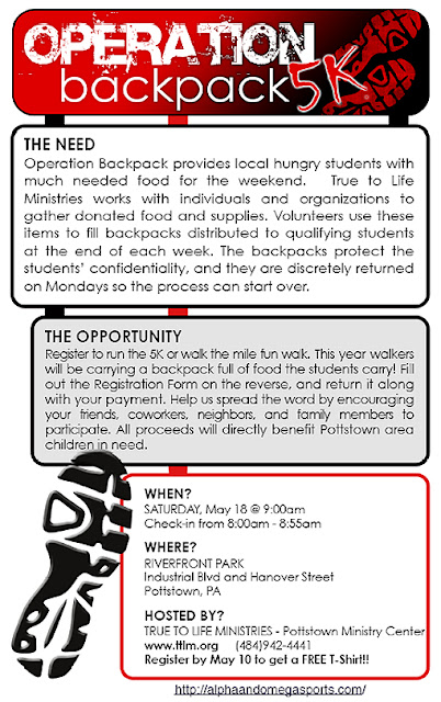 The 4th Annual Operation Backpack 5K will take place Saturday, May 18 at 9 a.m. on the Schuylkill River Trail,