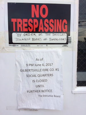 Chief among these last night was the fall-out from the closure of the Gilbertsville Fire Co. social hall, which came up during the solicitor's report.